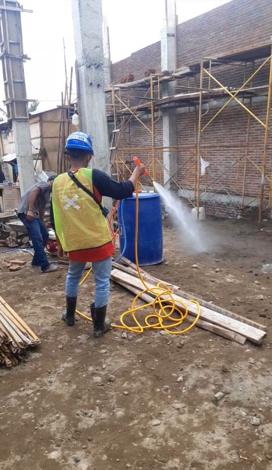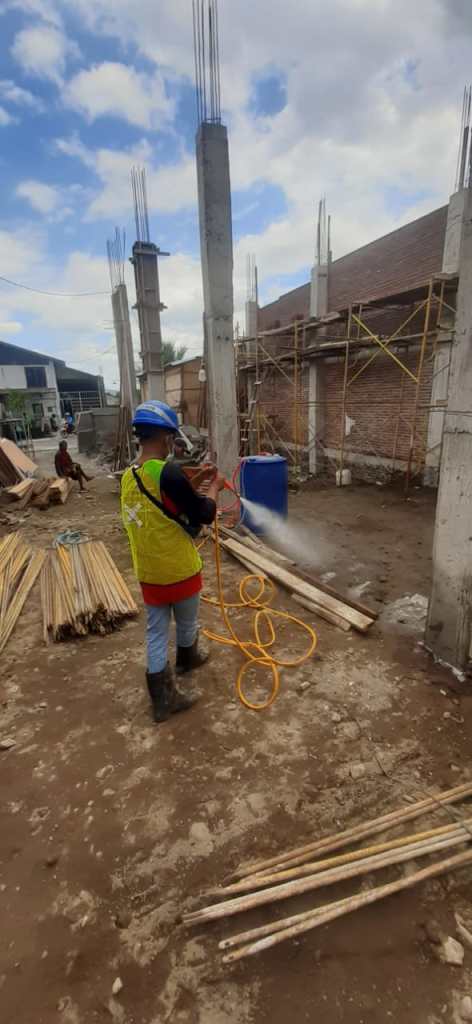 - Setelah lubang pondasi selesai digali, dasar dan dindingnya disemprot dengan larutan